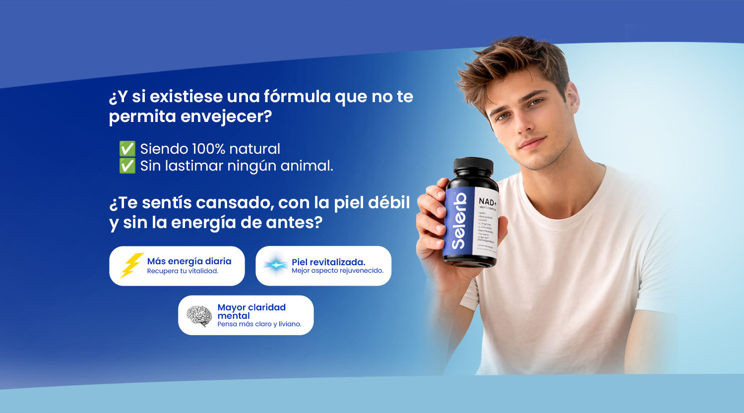 La combinación de NAD+ y cofactores metabólicos ayuda a optimizar la producción de energía celular, favoreciendo una sensación de vitalidad más estable sin depender de estimulantes.